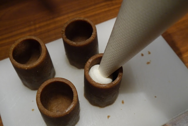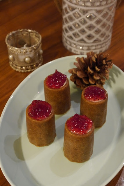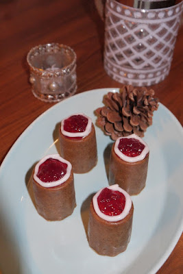 Näitä leivoksia on näkynyt tänä vuonna monessa blogissa Runebergin leivosten sijaan. Näin idean ensimmäistä kertaa Sokerivaltakunta blogissa jokin aika sitten. Sanja oli keksinyt tehdä pipareista ja pähkinöistä juustokakun pohjaa muistuttavan seoksen ja painellut sen silikonisiin snapsilasimuotteihin. Erilaisia variaatioita on sitten netti pullollaan. Osa on tehnyt Runebergin torttutaikinan ja paistanut sen kyseisissä snapsivuoissa.